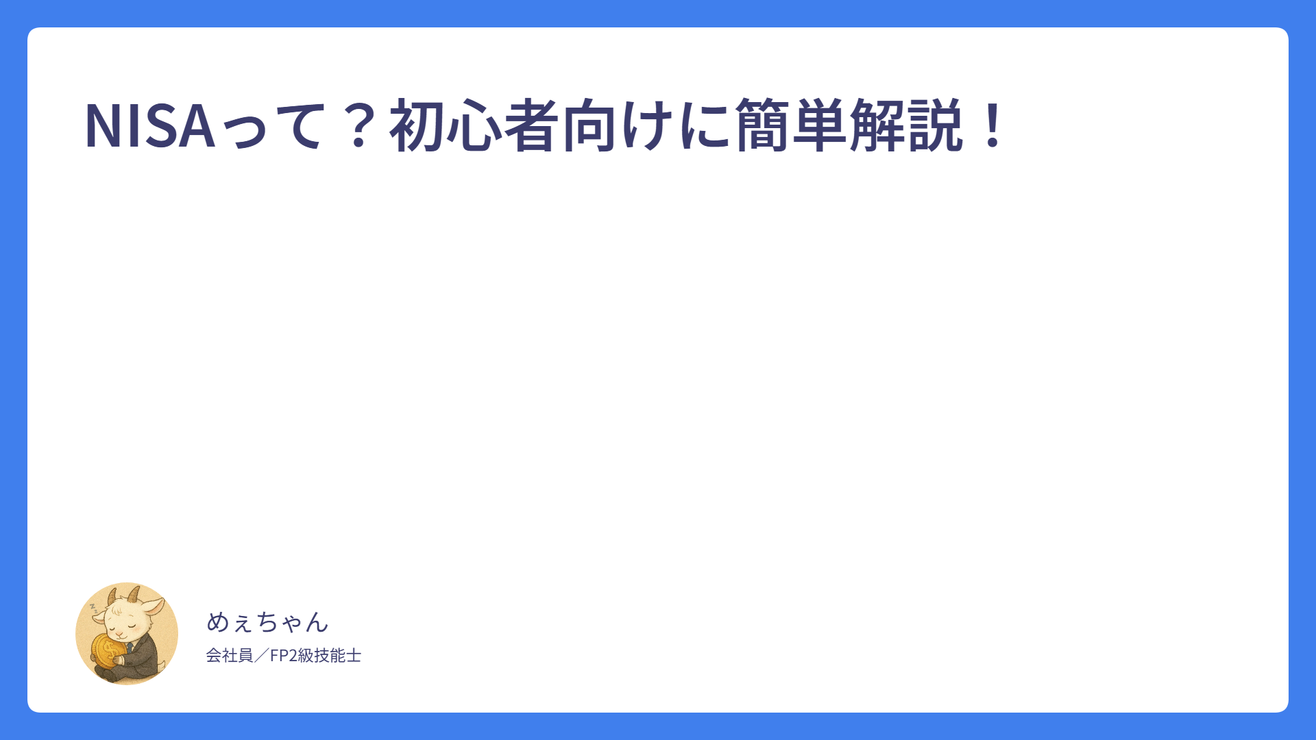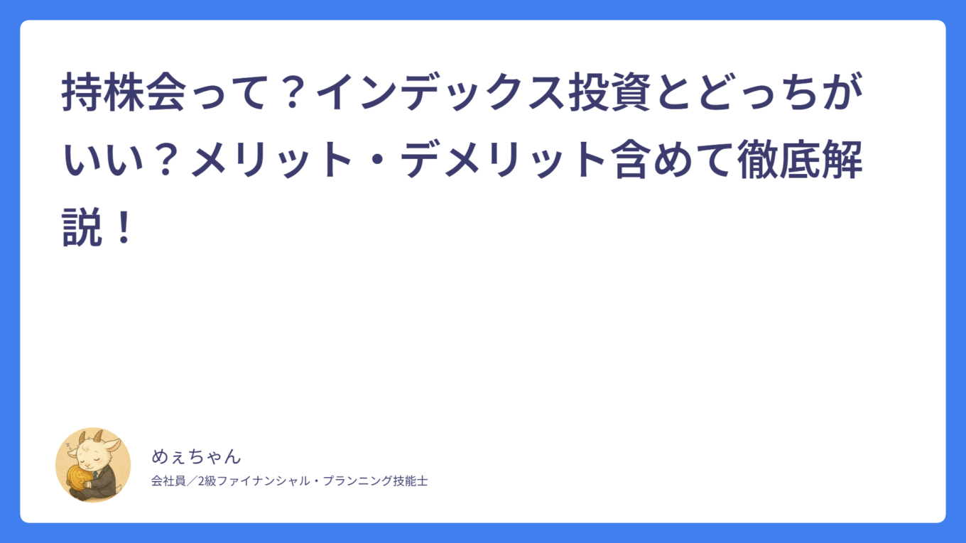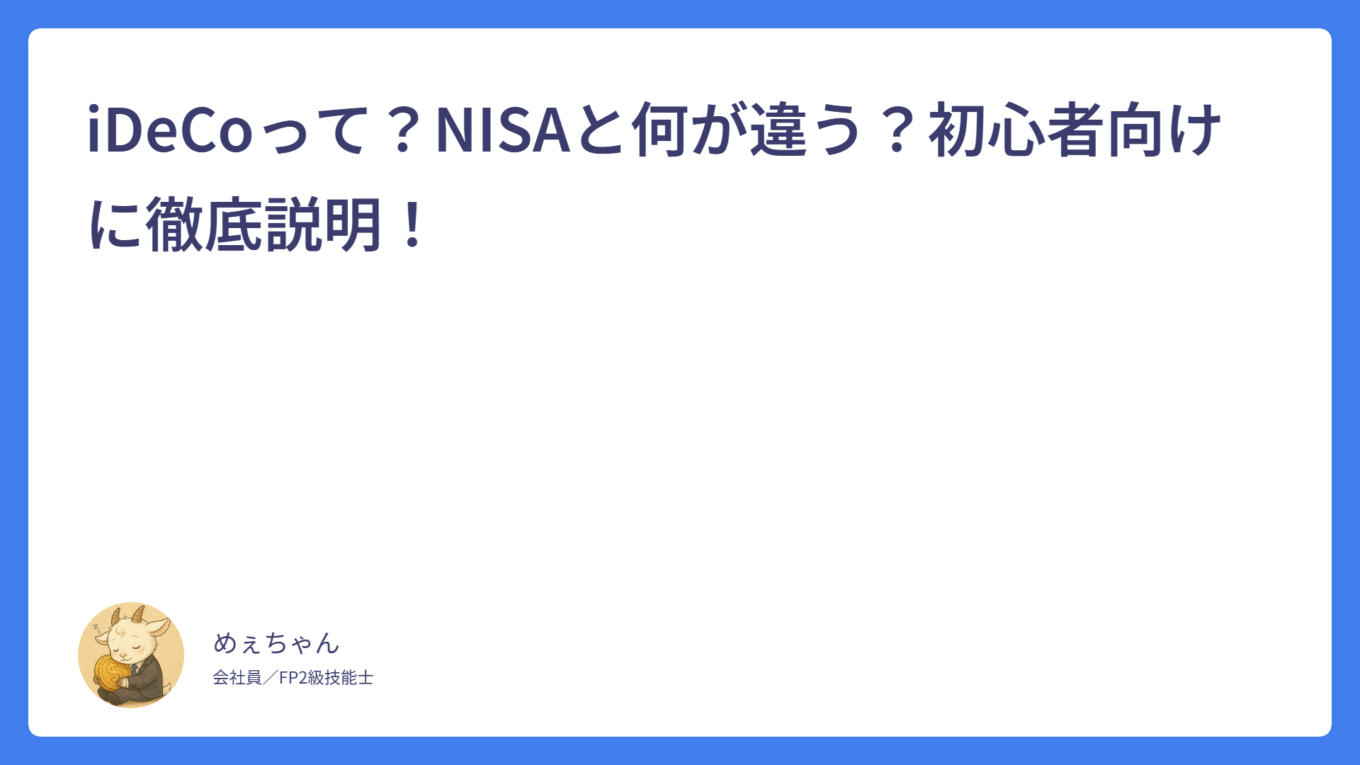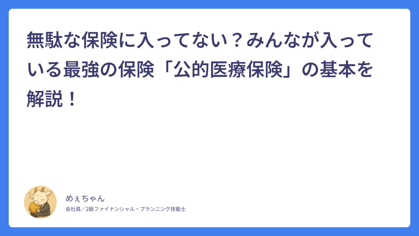 持株会って?インデックス投資とどっちがいい?メリット・デメリット含めて徹底解説! 2026.01.14 インデックス投資 めぇちゃん サラリーマンめぇちゃんのライフプランブログ 業務中にケガをしたらどうする?公的保険「労災保険」の基本を解説! 2026.01.10 労災保険 めぇちゃん サラリーマンめぇちゃんのライフプランブログ 無駄な保険に入ってない?みんなが入っている最強の保険「公的医療保険」の基本を解説! 2026.01.03 医療保険 めぇちゃん サラリーマンめぇちゃんのライフプランブログ iDeCoって?NISAと何が違う?初心者向けに徹底説明! 2025.12.28 iDeCo めぇちゃん サラリーマンめぇちゃんのライフプランブログ NISAって?初心者向けに徹底解説! 2025.12.20 NISA めぇちゃん サラリーマンめぇちゃんのライフプランブログ サラリーマンの味方!源泉徴収と年末調整について新社会人向けに基本を解説! 2025.12.14 税金 めぇちゃん サラリーマンめぇちゃんのライフプランブログ 所得税ってどうやって決まるの?新社会人必見!所得税の基本を解説! 2025.12.06 税金 めぇちゃん サラリーマンめぇちゃんのライフプランブログ はじめまして!サラリーマンのめぇちゃんです! 2025.11.29 その他 めぇちゃん サラリーマンめぇちゃんのライフプランブログ
