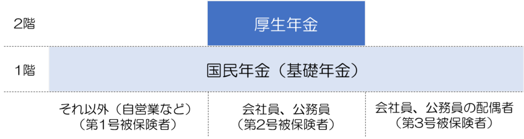 2階:厚生年金…会社員・公務員のみ上乗せで加入する年金
