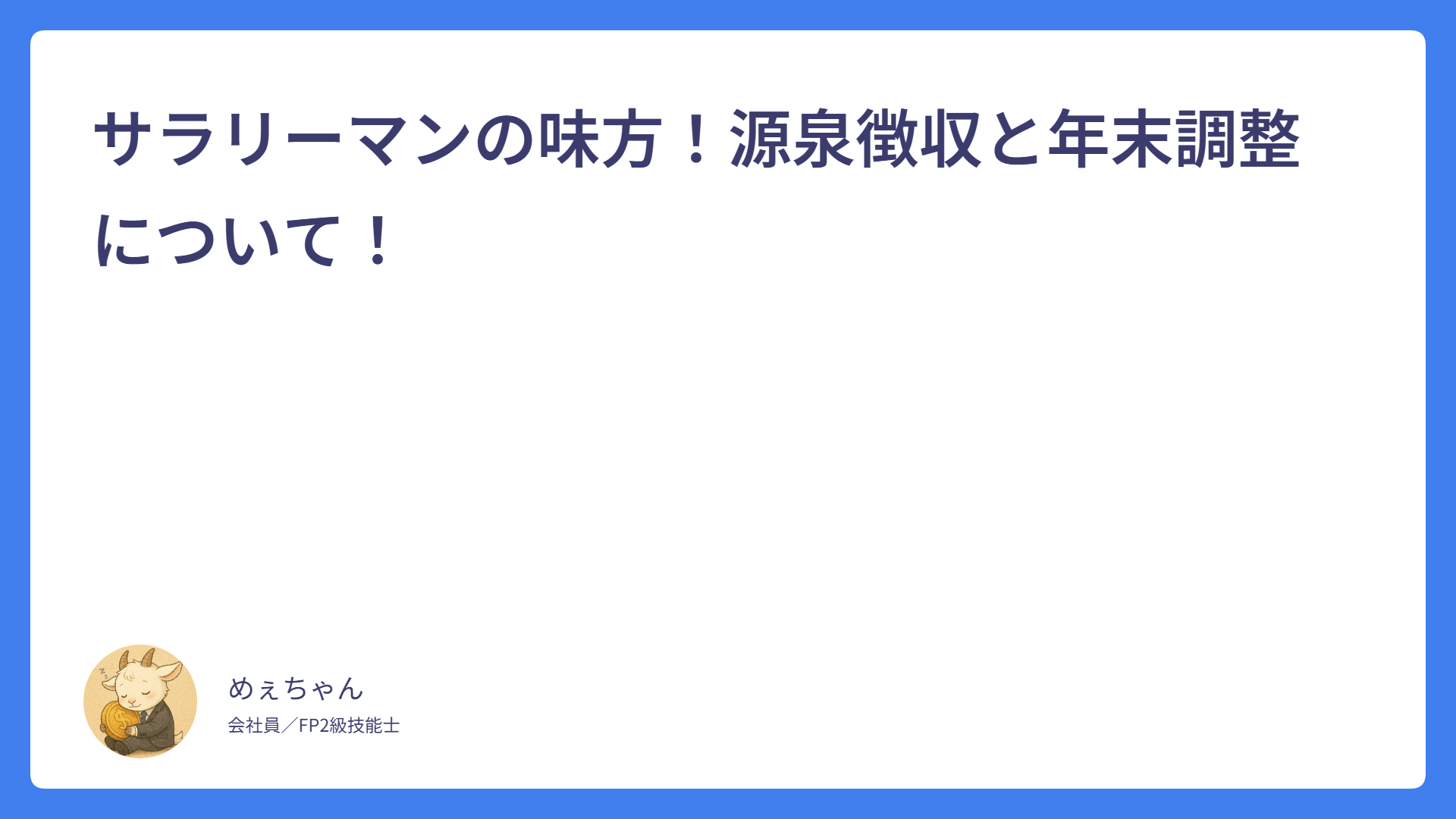 そこで!今回はサラリーマンのありがた~い味方である源泉徴収と年末調整についてお話します!